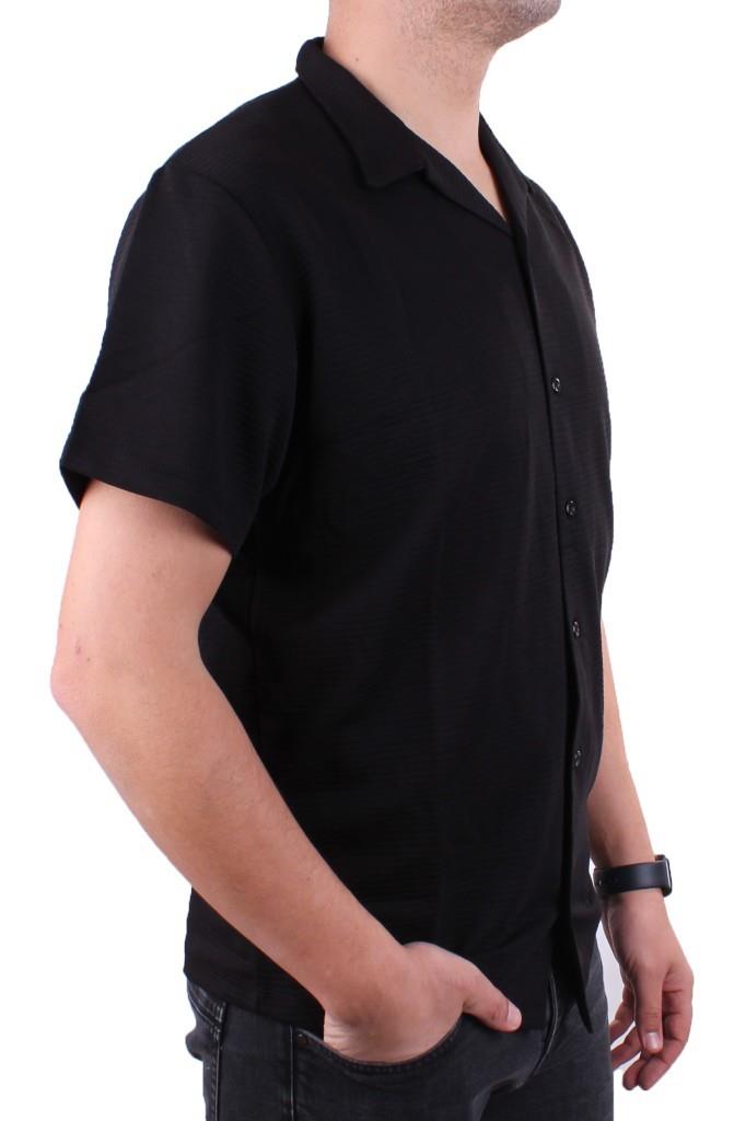 Dagoster DMG23-199598 Siyah Ottoman Örme Apaj Yaka Oversize Kalıp Kısa Kol Erkek Gömlek